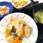 がんもと根菜の含め煮🥕/ごまサラダ🥗/コンビーフポテト🥔/みそ汁/果物(みかん🍊)#今日のお昼ご飯「具材に味がしっかり染みて、やわらかく食べやすかった」「コンビ ...