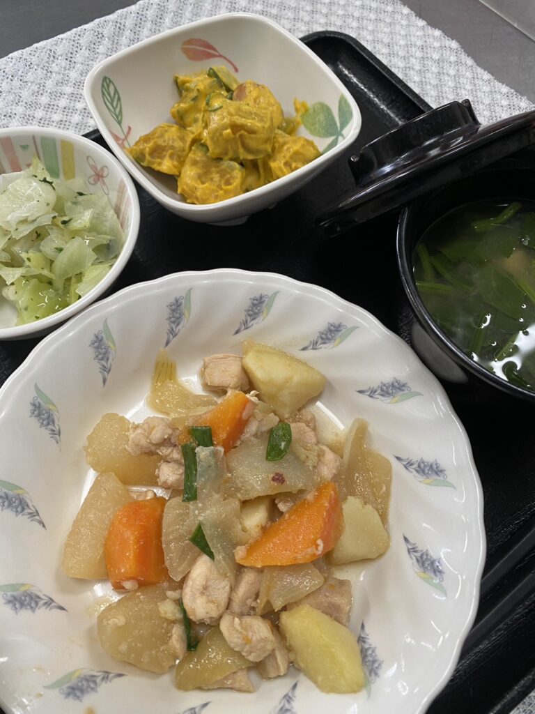 『華風煮』はあっさりとした煮物で、利用者の方から「献立を見たとき想像がつかなかったけれど、美味しくたべました」とご感想をいただきました。また、『かぼちゃサラダ』はかぼちゃ本来の甘みとボリューム感で「それぞれのバランスがちょうど良いお昼ごはんでした」との声も。