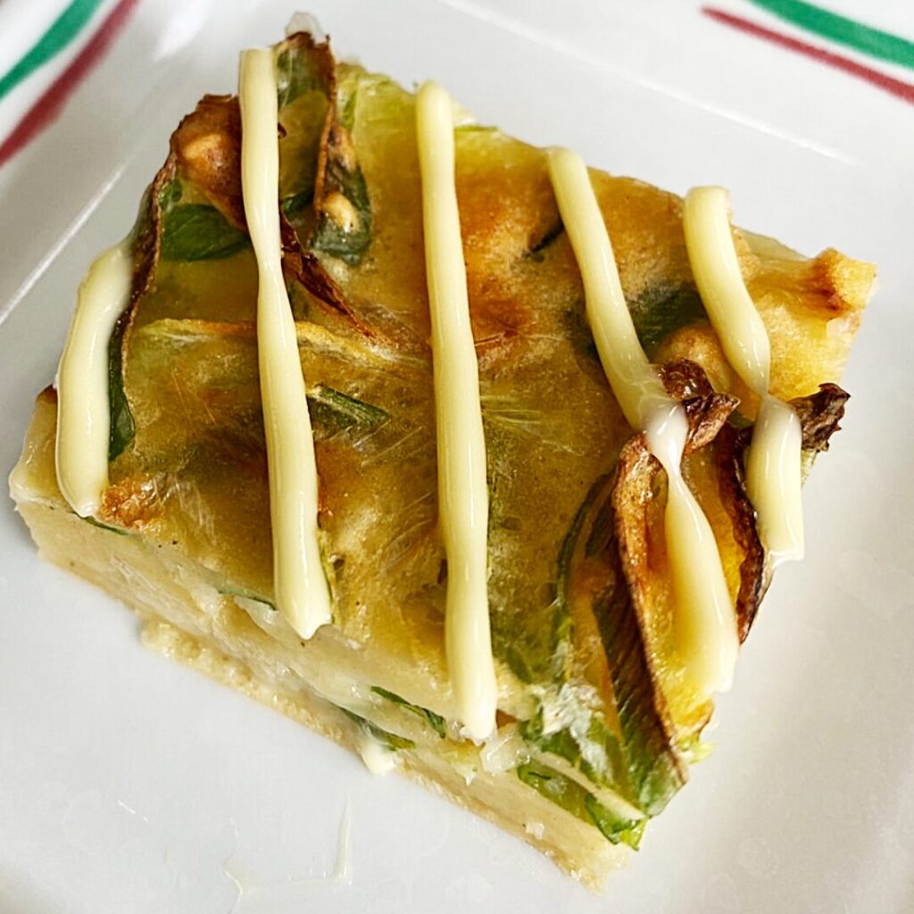 本日(10月1日・水曜日)のおやつは「ねぎ焼き」でした🌿