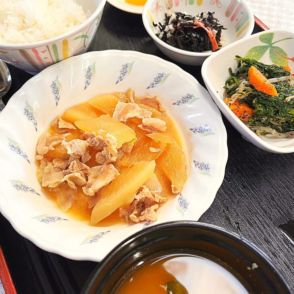 ご利用者さん・職員からは、「豚肉と大根のゆずみそ煮は、大根の味がしっかりついて美味しかったです。春菊やゆずなどの季節の食材が、それぞれの料理に加えられていて、秋の味だと感じました。」という声をいただいています😊
