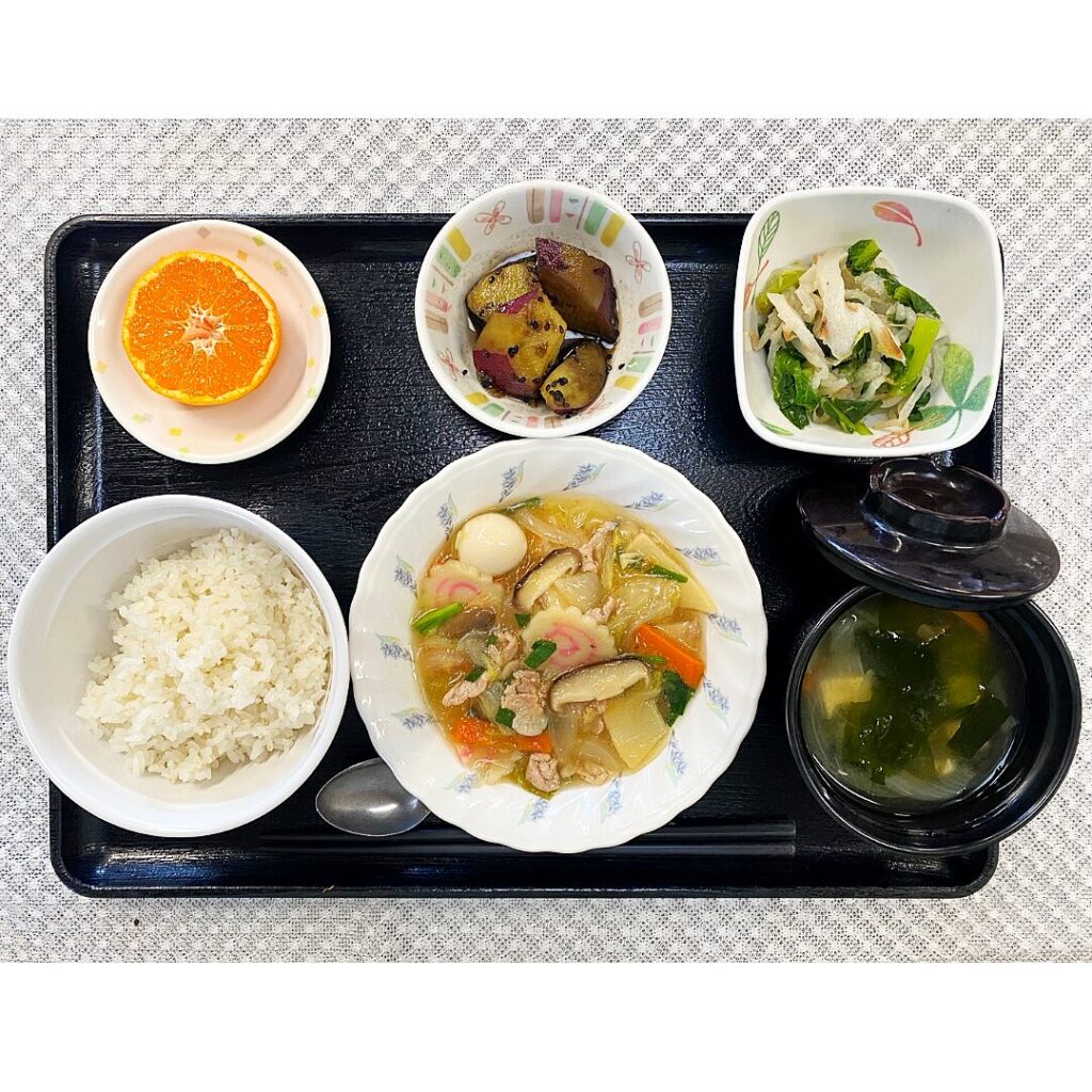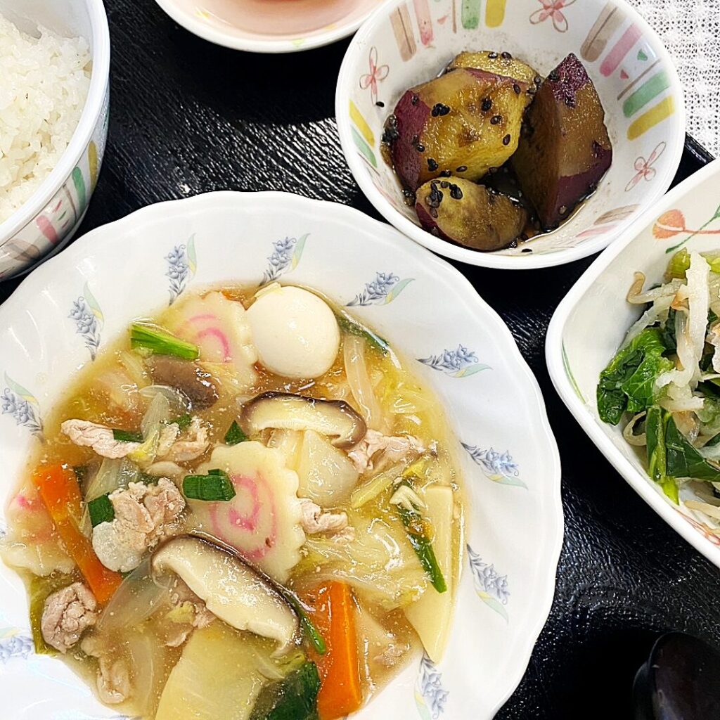 八宝菜は、野菜がやわらかく、とろみがあり食べやすい一品。