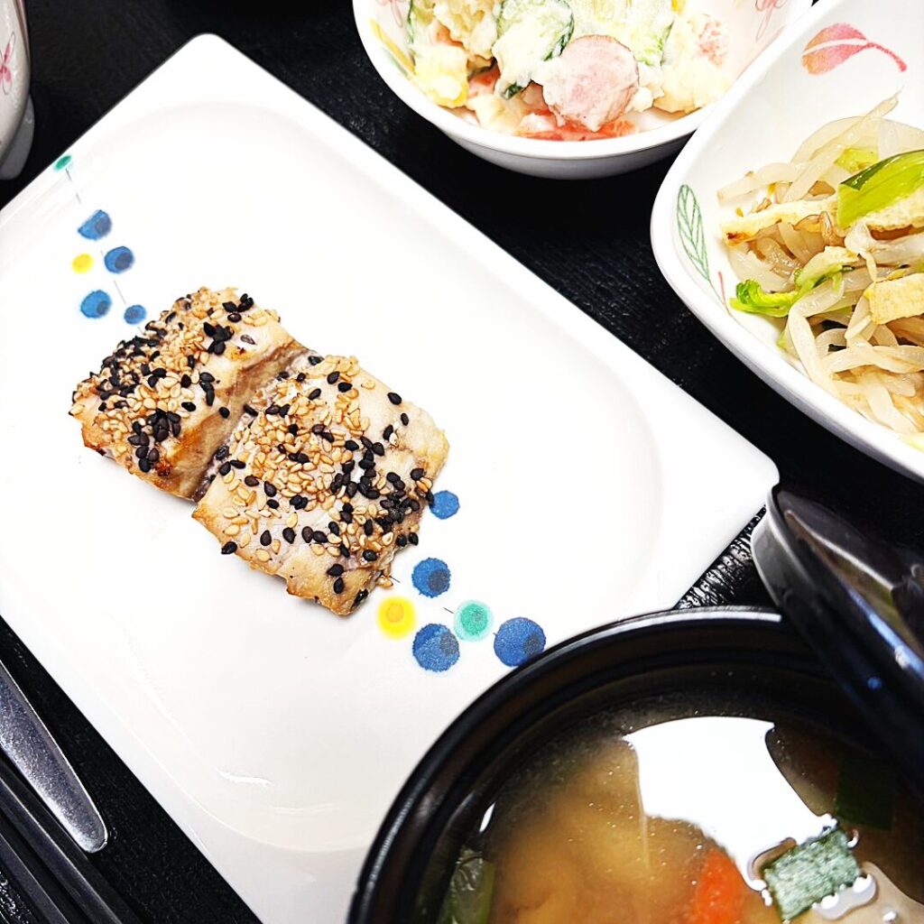 鰆のごま焼きは、ごまの香ばしさが食欲をそそり、シンプルな味付けだからこそ、魚そのもののおいしさをしっかり感じられる一品でした🐟