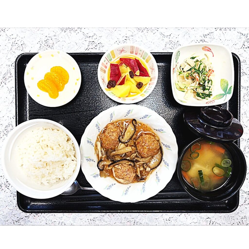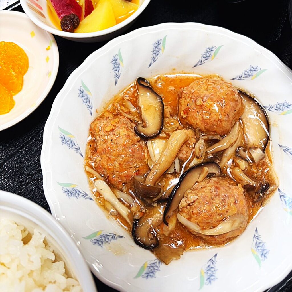 前橋市でデイサービスの昼食内容が気になる方へ。宮城の里デイサービスセンターの3月14日土曜日、きょうのお昼ごはんは、きのこの和風煮込みハンバーグを中心に、栄養バランスのよい春らしい献立でした🍽️🌸