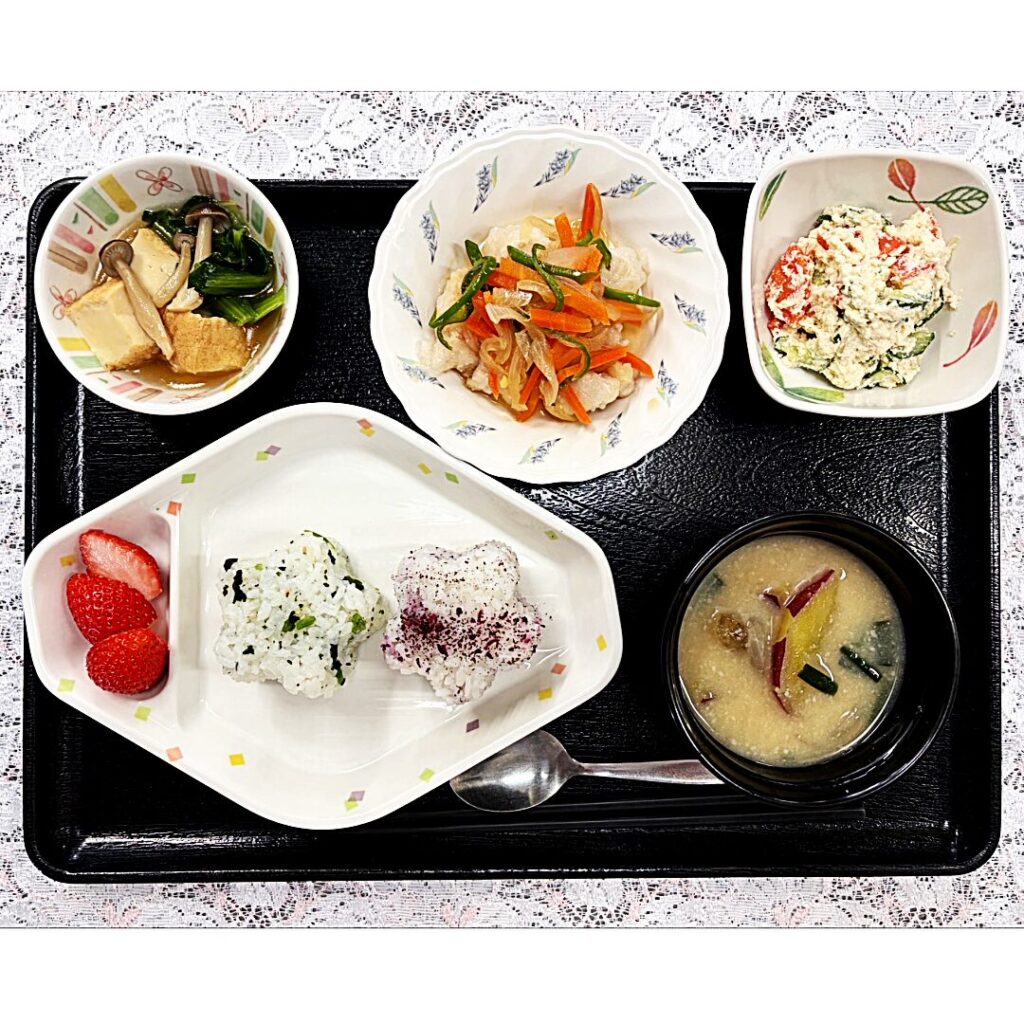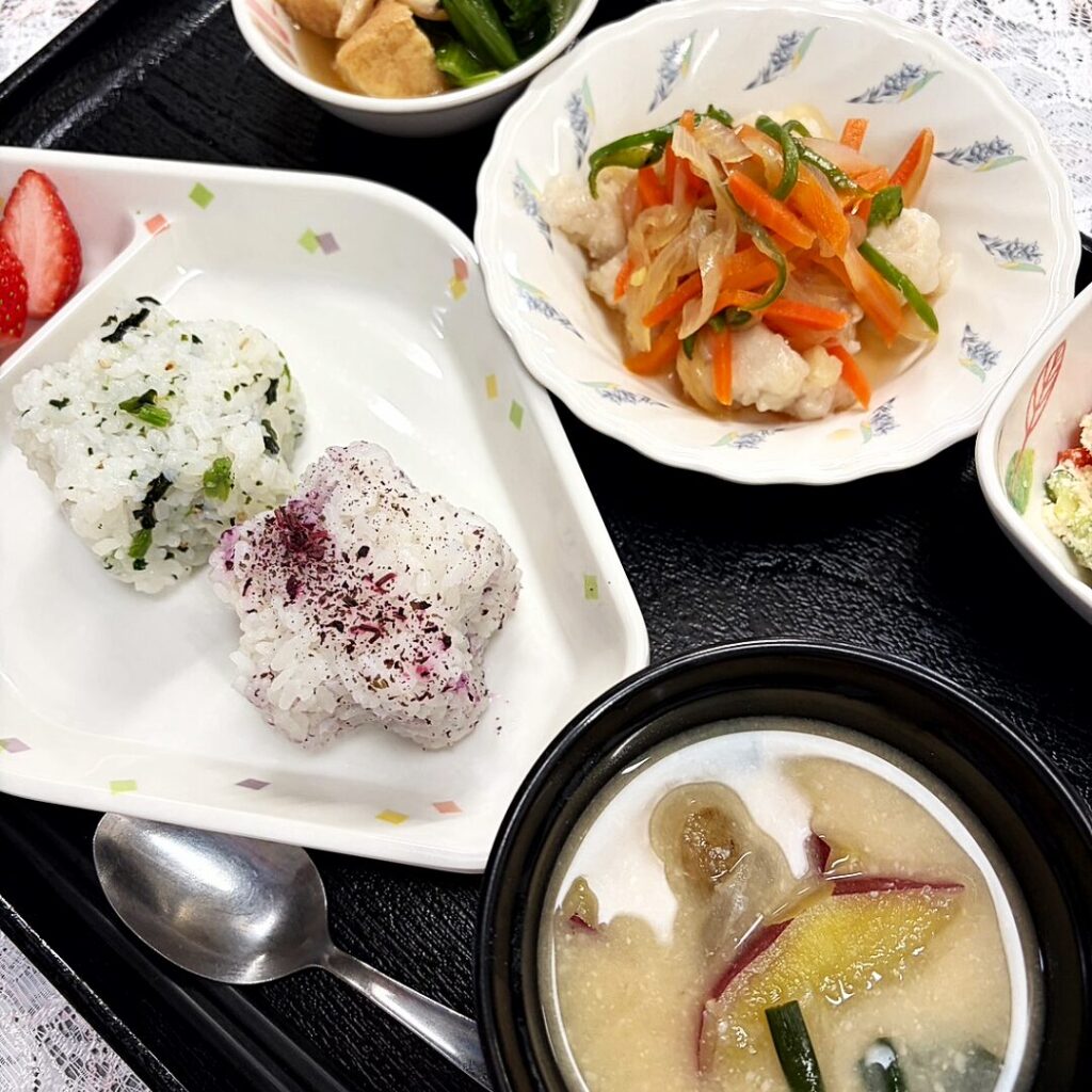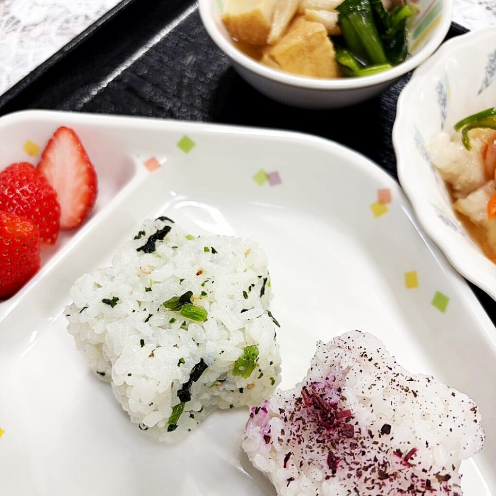 花むすびは、春らしい彩りとかわいらしさがあり、食卓がぱっと明るくなる一品でした🌷